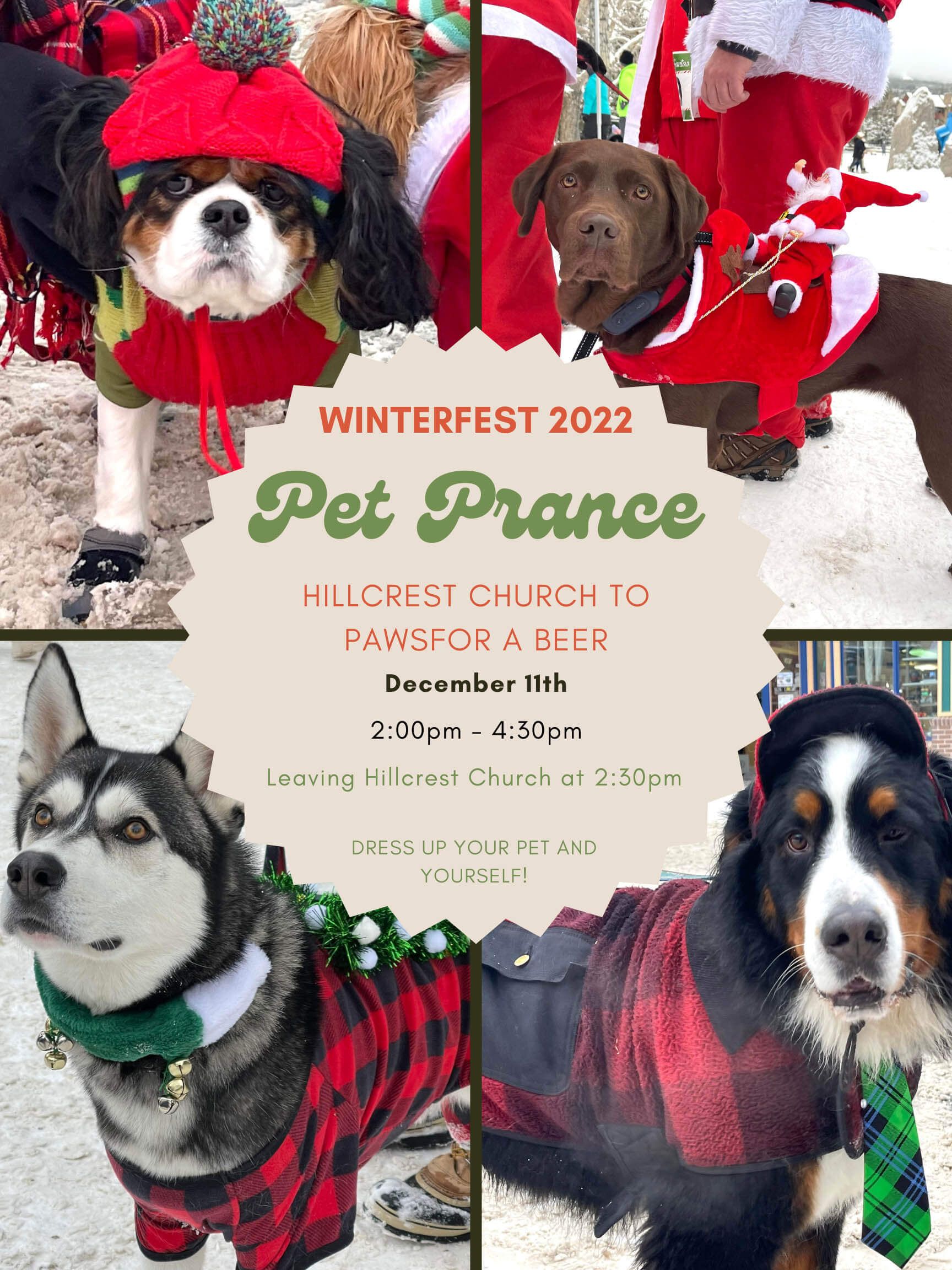 Gather at Hillcrest Church (1400 Larrabee) at 2:00pm with your pets in their best holiday costumes (owners encouraged to dress up as well)!
